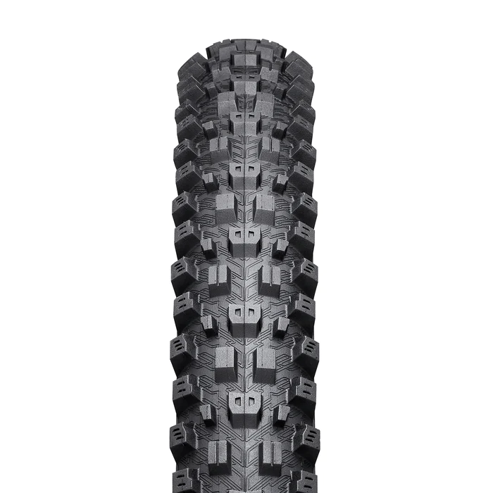 Le pneu Tectonite avant repose sur une bande de roulement directionnelle qui comprend des boutons centraux inclinés, des pattes d’épaule inclinées et des boutons de transition alternés pour fournir de nombreux angles de traction pour des virages cohérents et fiables, quelle que soit la force avec laquelle vous poussez dans le virage. Pour des performances optimales, associez le Tectonite à un pneu Basanite sur la roue arrière. Le Tectonite est disponible en versions Trail et Enduro avec des composés de carcasse, de construction et de bande de roulement spécifiques à l’utilisation prévue. Les modèles Trail sont dotés de notre construction…