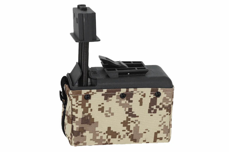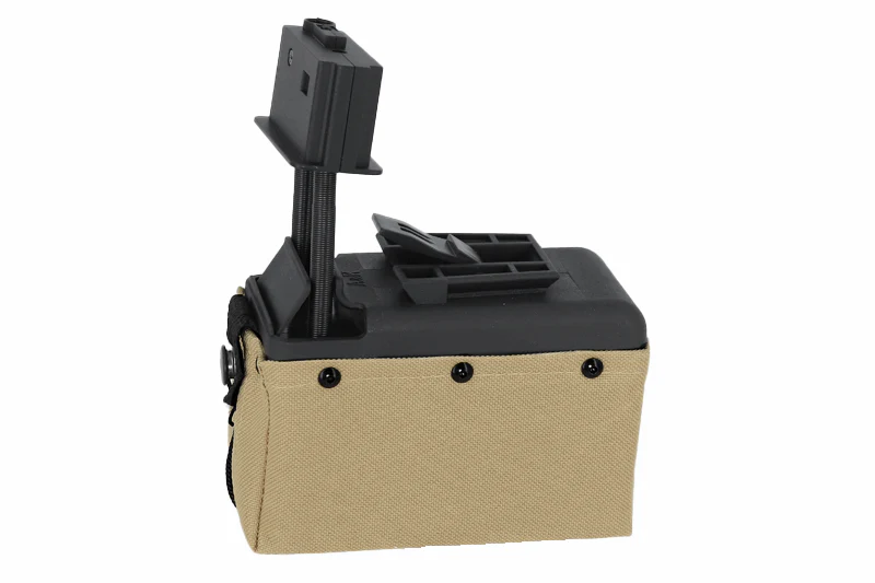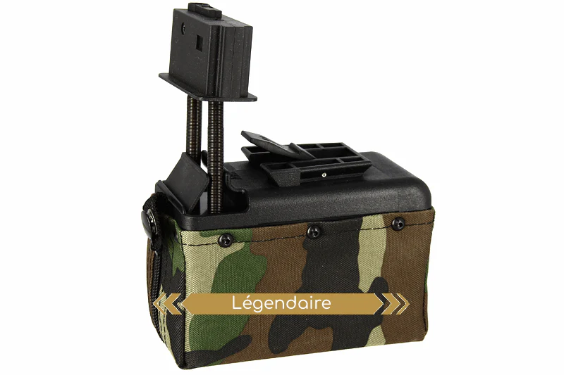 Ammo Box Mini d’une capacité de 1500 billes idéale pour votre réplique airsoft AEG M249 de marque A&K.