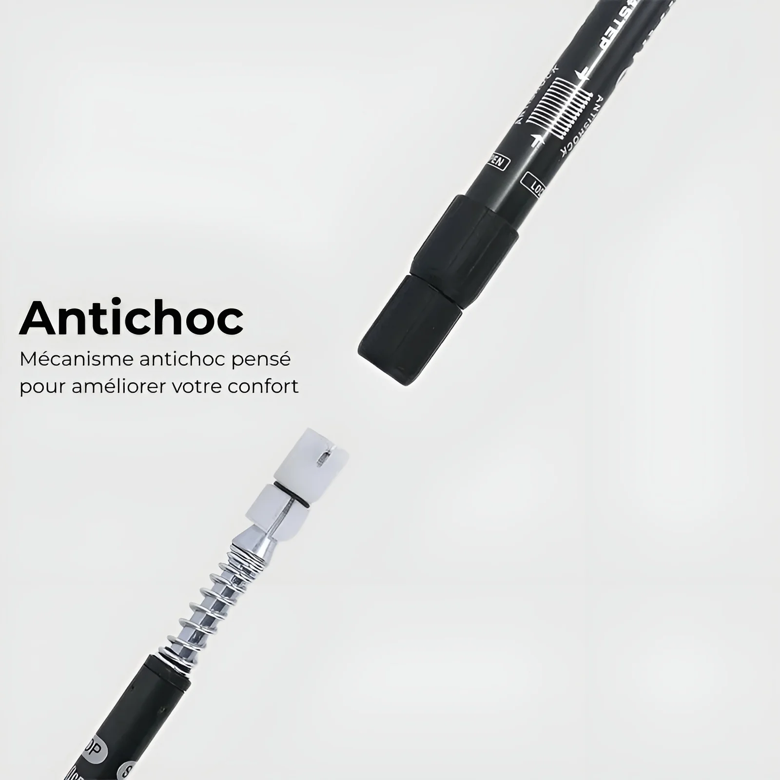 Les MountainPro 135 incarnent l’équilibre entre performance, robustesse et confort. Conçus pour les randonneurs exigeants, ces bâtons télescopiques en alliage d’aluminium 6061 assurent une stabilité optimale sur tous types de terrains. Leur système anti-choc réglable absorbe efficacement les vibrations, protégeant vos articulations et réduisant la fatigue sur les longues distances.