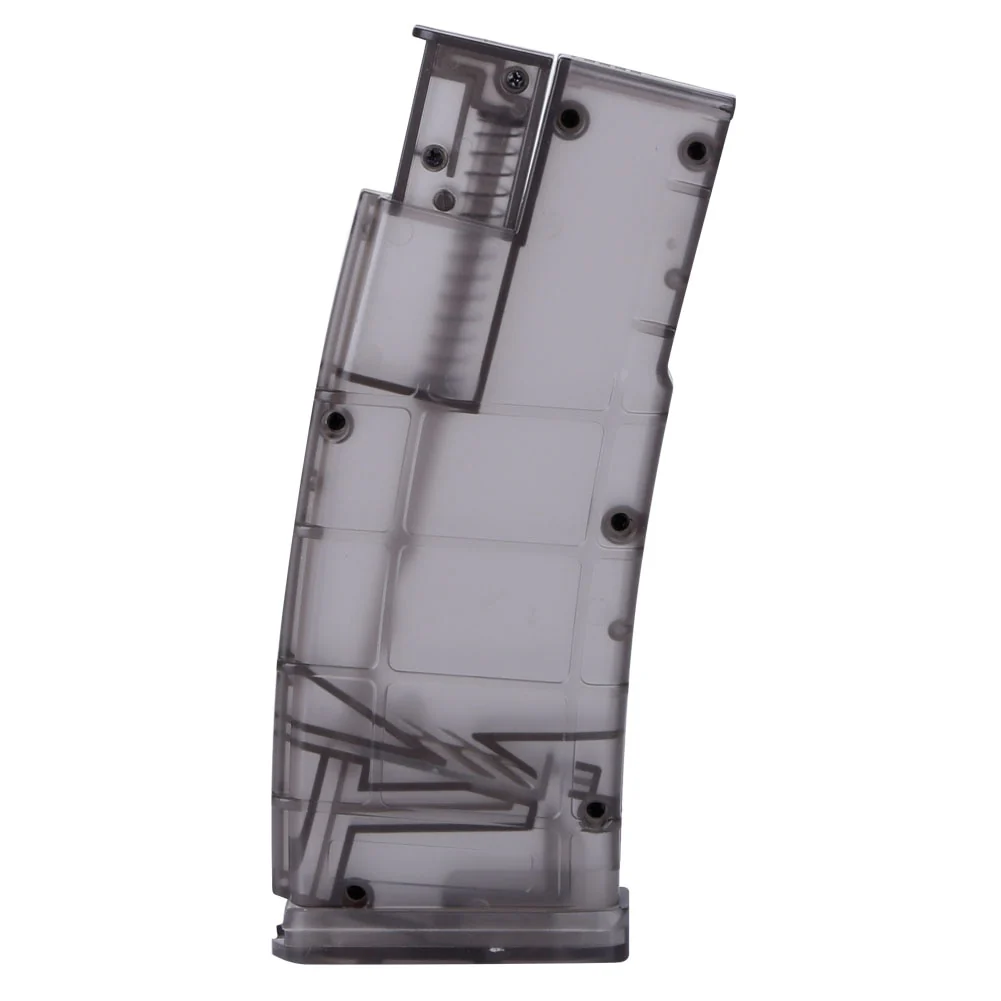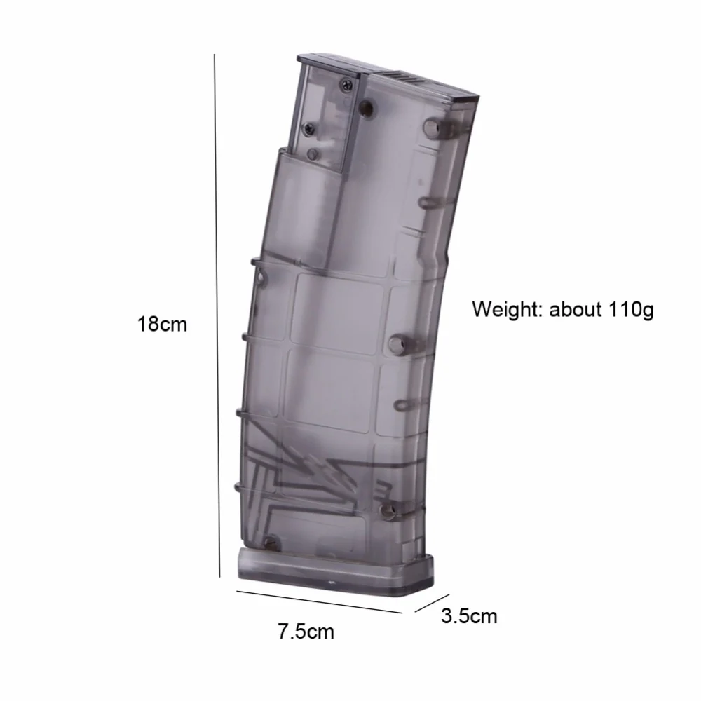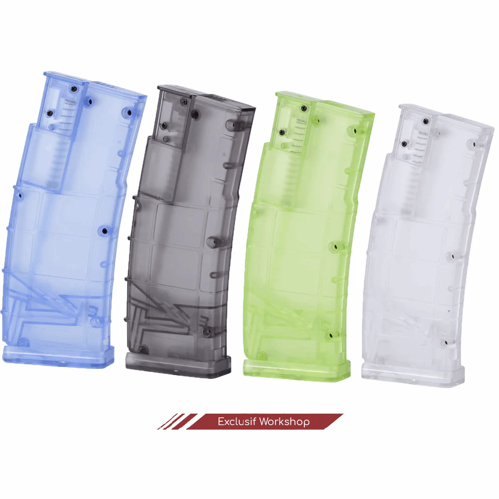 SPECIFICATIONS Poids : 110 g Taille : 18 x 7,5 x 3,5 cm Couleur transparente : Noir, Blanc, Vert, Bleu Capacité : 500 billes Matériau : plastique ABS