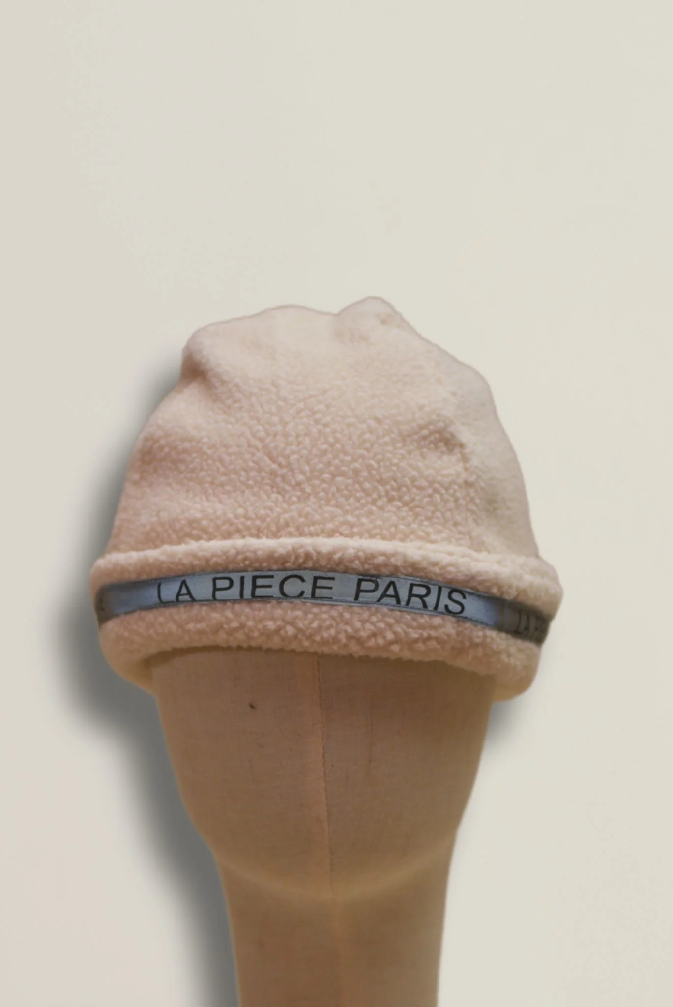 Accessoire essentiel de la collection Panache à Paname, le bonnet Sherpa est conçu en imitation peau de mouton. Cette matière au fini texturé est contrastée par une bande réfléchissante brevetée sur la bande repliable. Une sérigraphie La Pièce Paris est appliquée sur la matière réfléchissante.