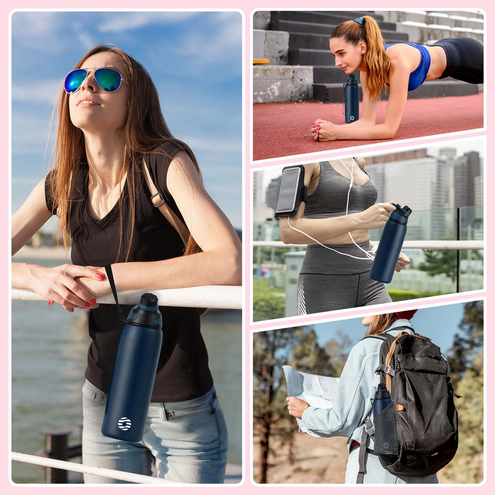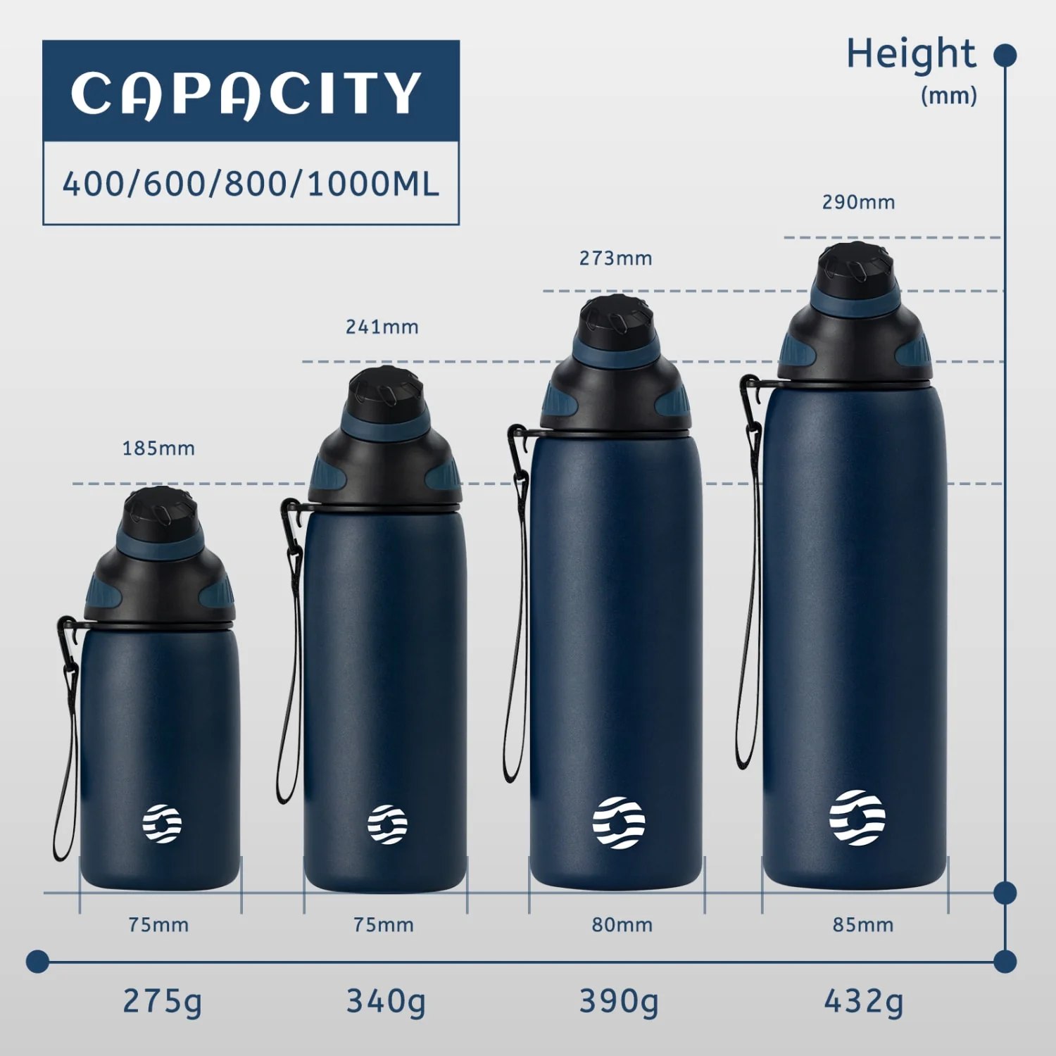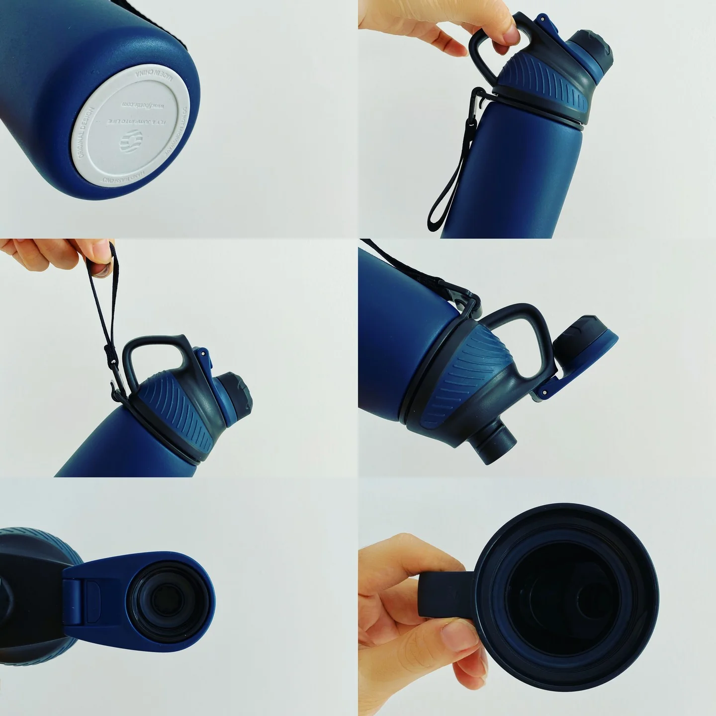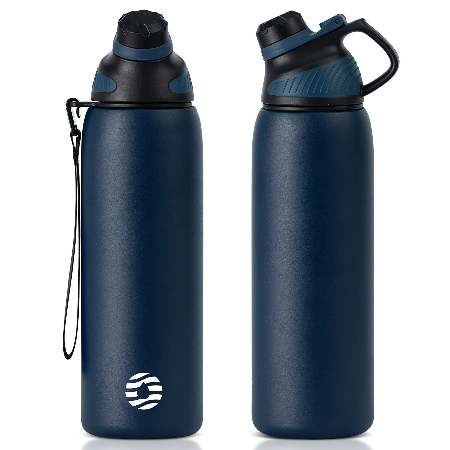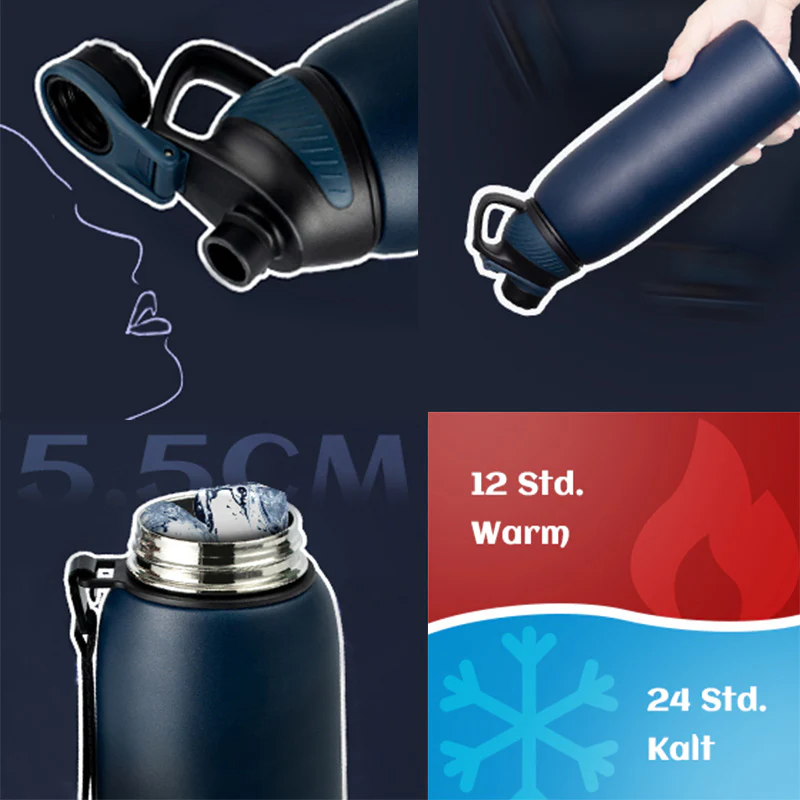 Bouteille d’eau isotherme en acier inoxydable avec couvercle magnétique, bouteille d’eau gazeuse, bleu, 1 000 ml