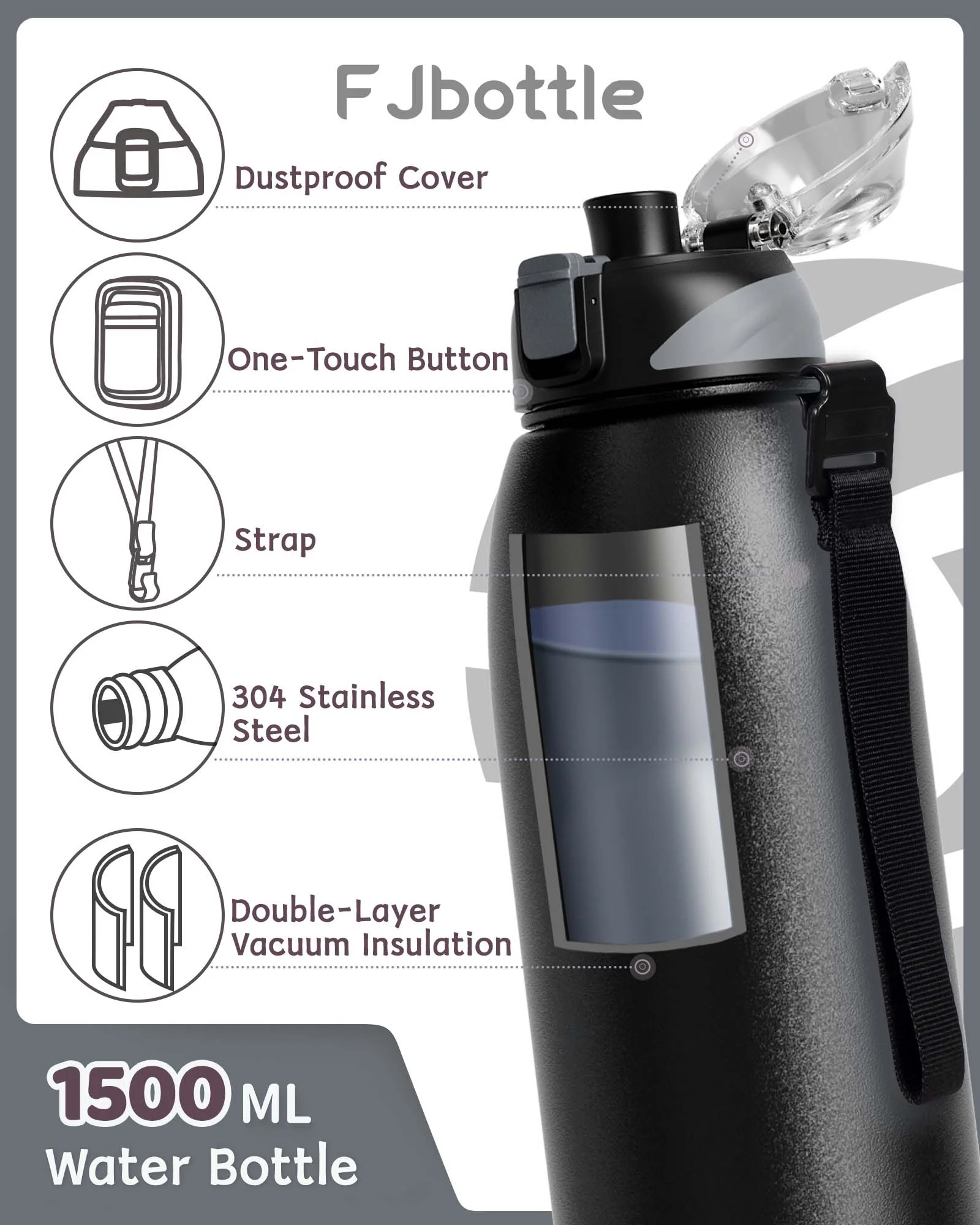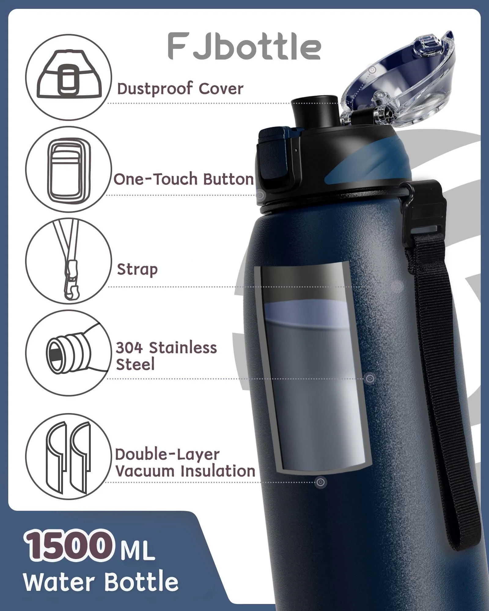 Bouteille d’eau thermos en acier inoxydable de 1 500 ml, bouteille de boisson gazeuse