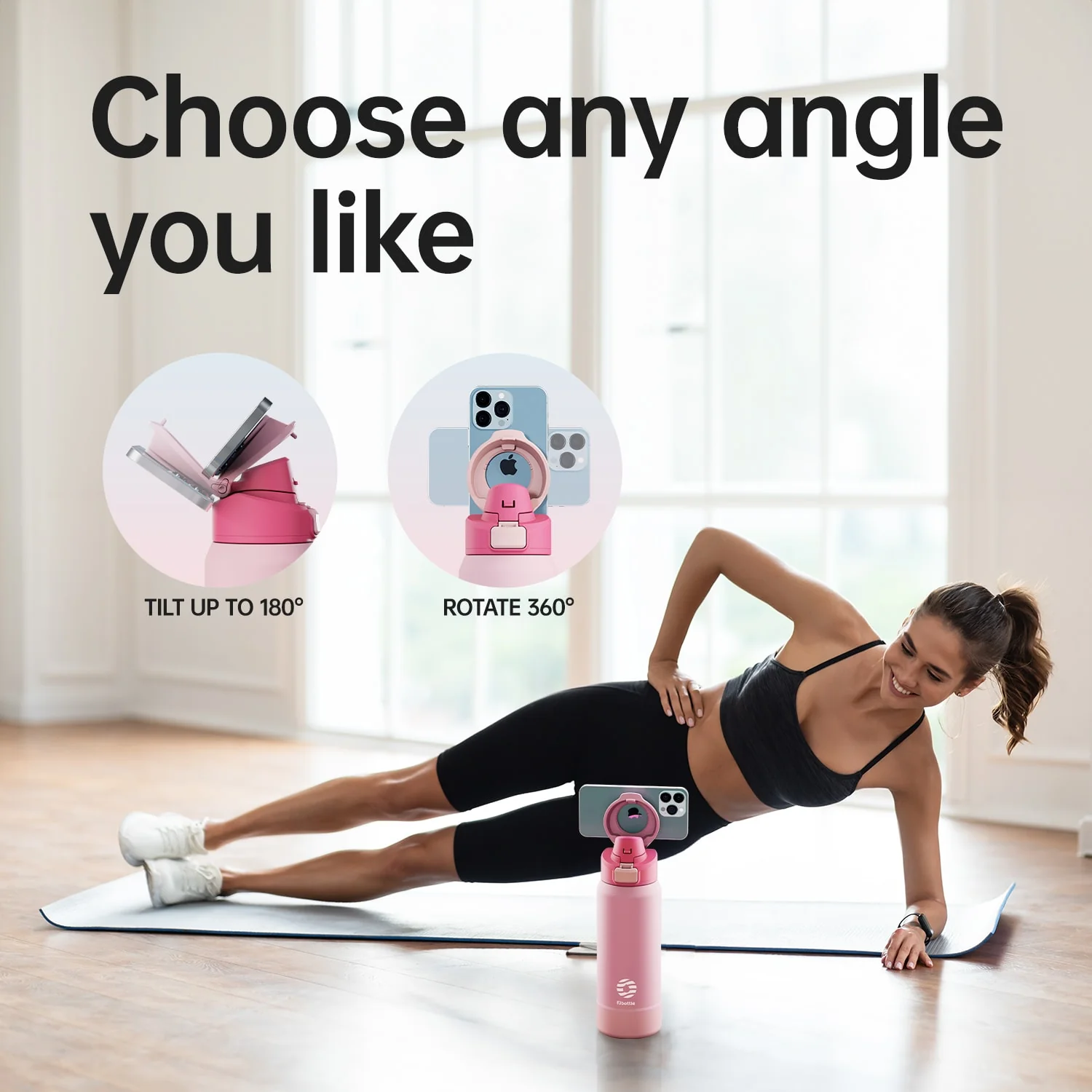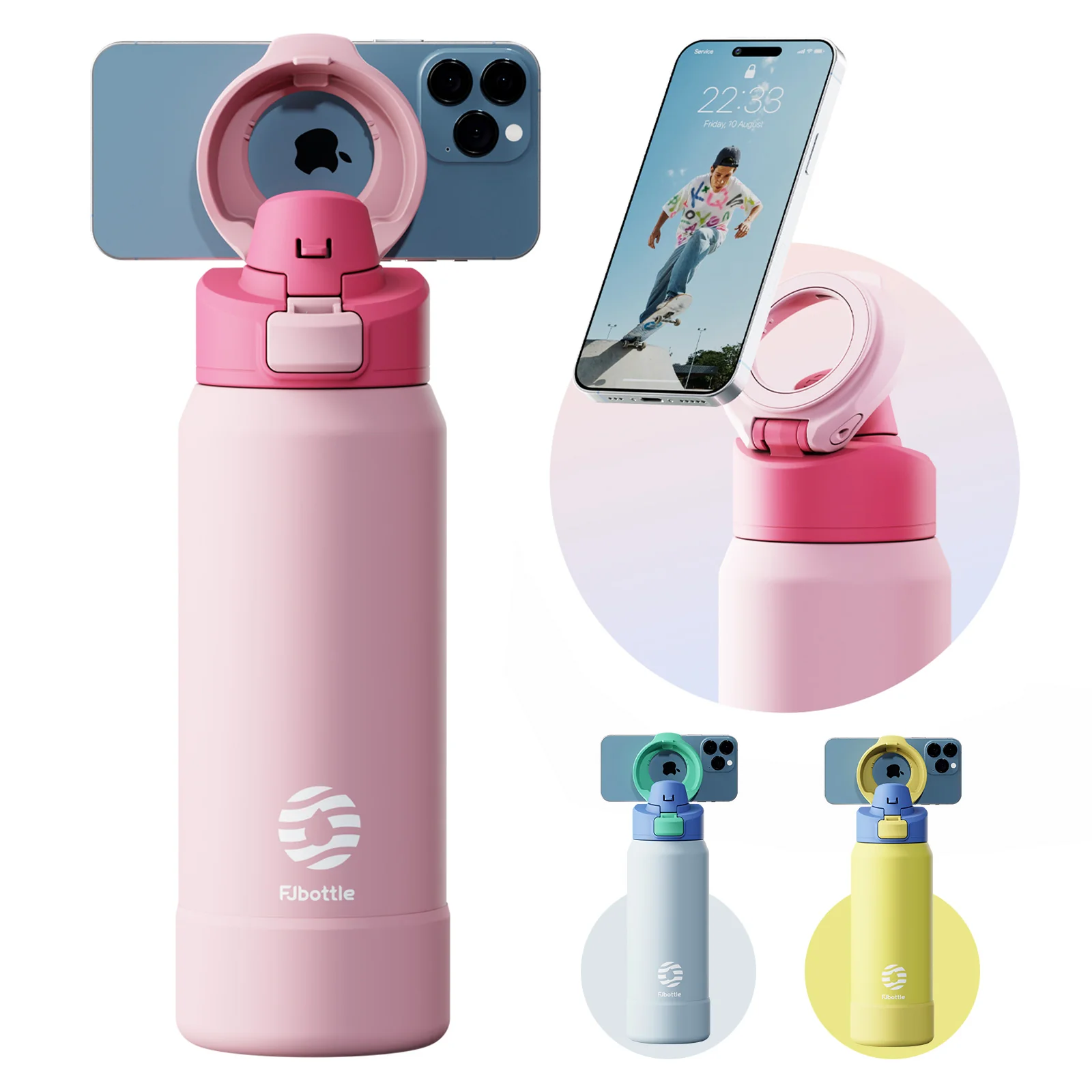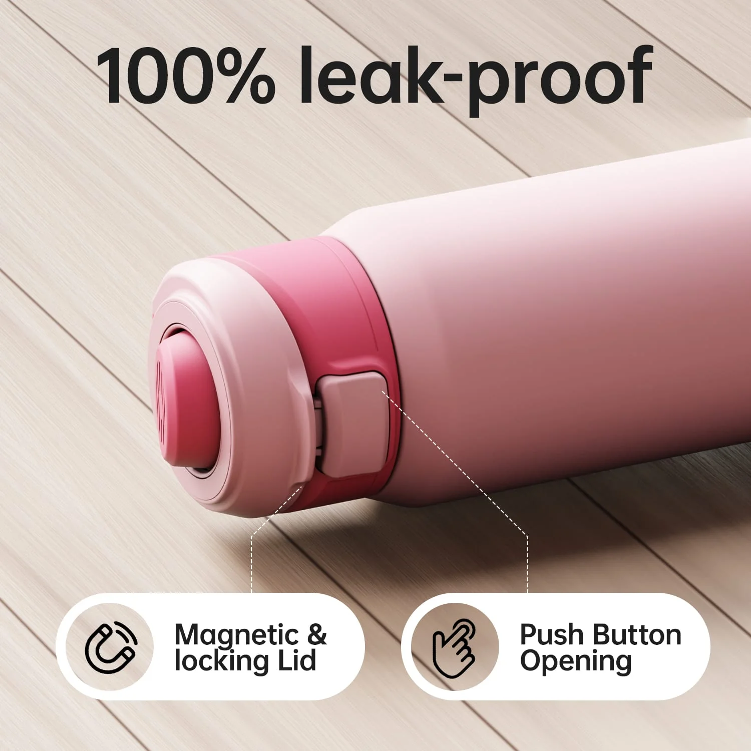 Bouteille isotherme en acier inoxydable de 710 ml avec couvercle magnétique, bouteille d’eau gazeuse, rose
