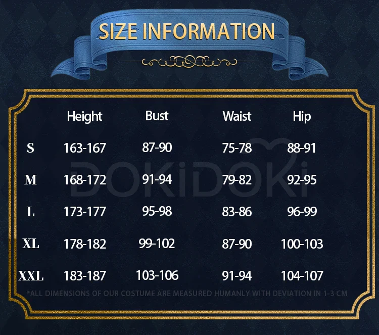 SPECIFICATIONS Composants : Haut, pantalon, trench Tissage : Frivolité Genre : Homme Matière : POLYESTER Ce cosplay pèse plus de 3 kg. Veuillez lire attentivement le guide des tailles. N’hésitez pas à nous contacter pour obtenir de l’aide concernant le choix de votre taille, poids, tour de taille, tour de poitrine et tour de hanches.
