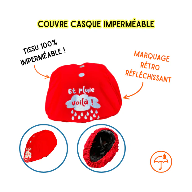 - ☔️ Tissu imperméable : garde votre casque et vos cheveux au sec.
