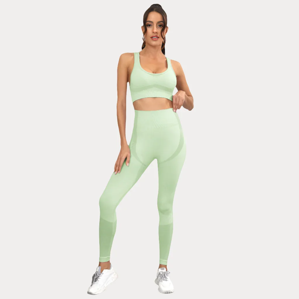 Notre ensemble Pastel avec leggings longs et crop top est le set parfait pour un look confortable et à la mode. Les leggings longs sont fabriqués à partir d’un tissu doux et ajusté, tandis que le crop top est conçu avec une texture qui offre une couverture confortable, idéale pour s’entraîner avec style.