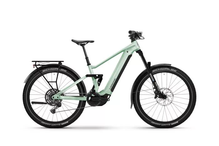 VTT électrique tout suspendu avec cadre en aluminium pour hommes, disponible en tailles S, M, L et XL.