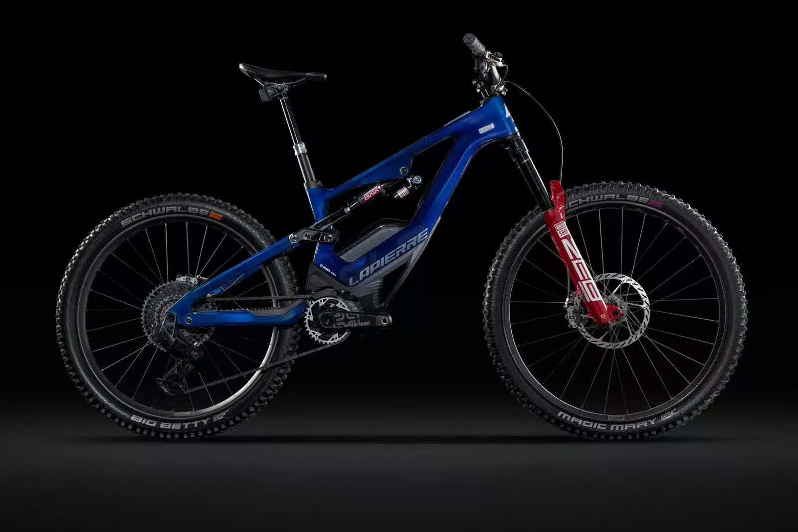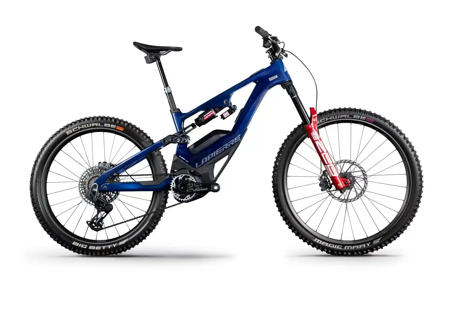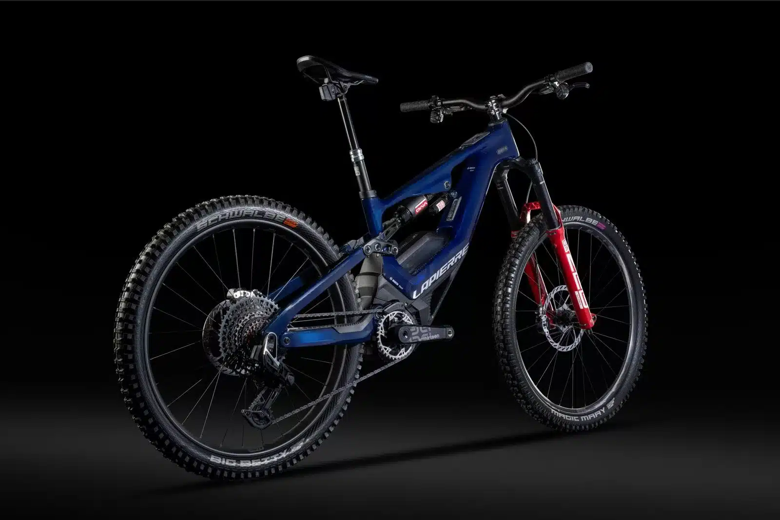 Pneus : Avant : Schwalbe Magic Mary Evo ; Arrière : Schwalbe Big Betty