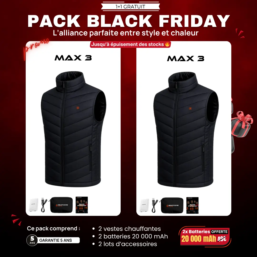 Pack Heatcore™ Max 3 – Gilet Chauffant – Veste premium avec batterie (offert)
