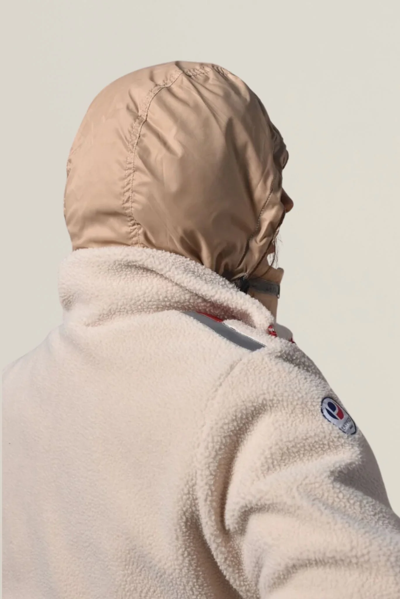 La capuche, fabriquée dans un matériau fin, se range discrètement dans une poche située à l’arrière du cou, offrant une solution pratique en toutes circonstances.