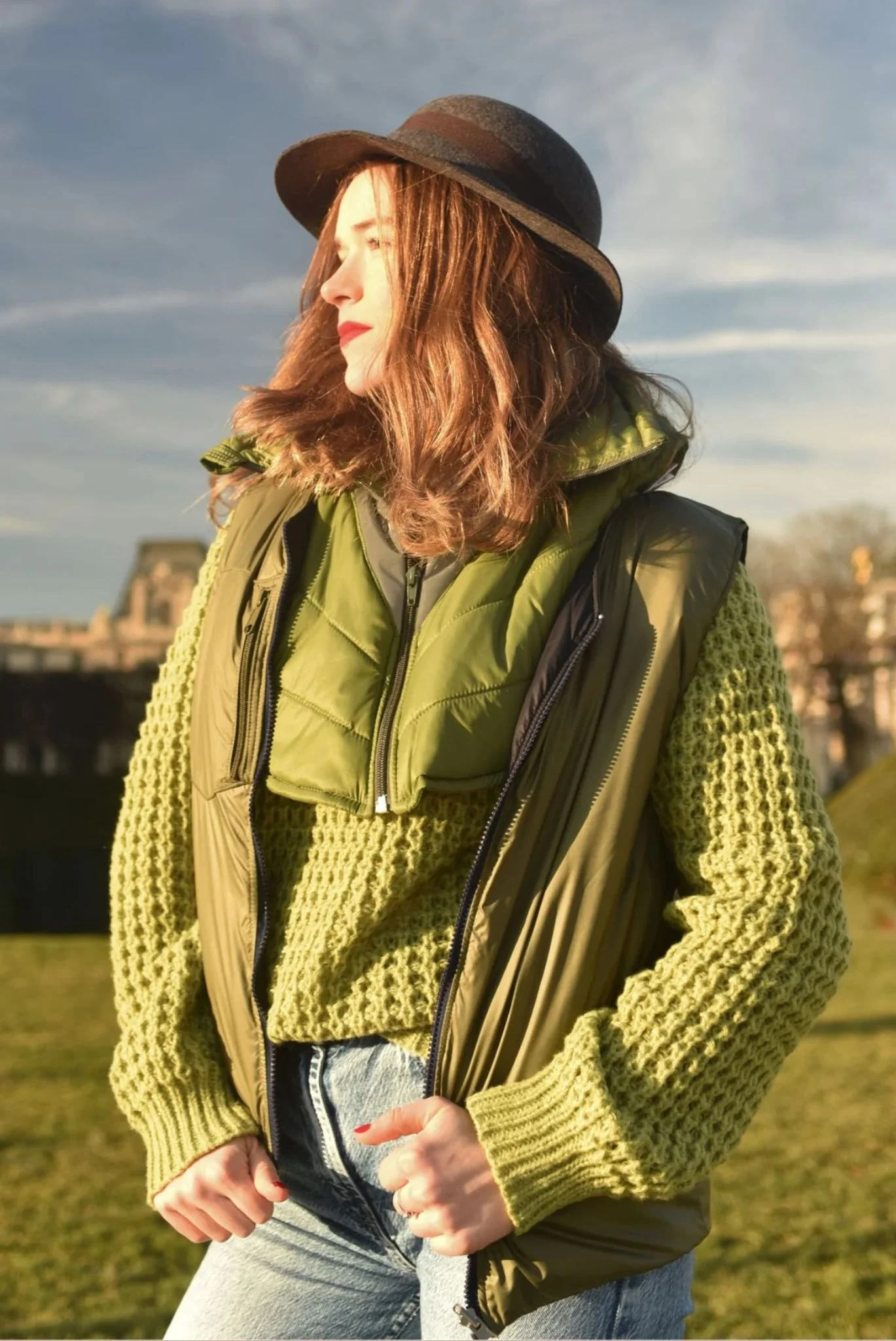 Iconique et fonctionnel, le plastron doudoune à capuche rétractable est une création développée en 2019 par une sportive de haut niveau, adaptée aussi bien aux femmes qu’aux hommes actifs. Avec sa conception coupe-vent et ses détails inspirés du cyclisme urbain, ce plastron allie performance et style.