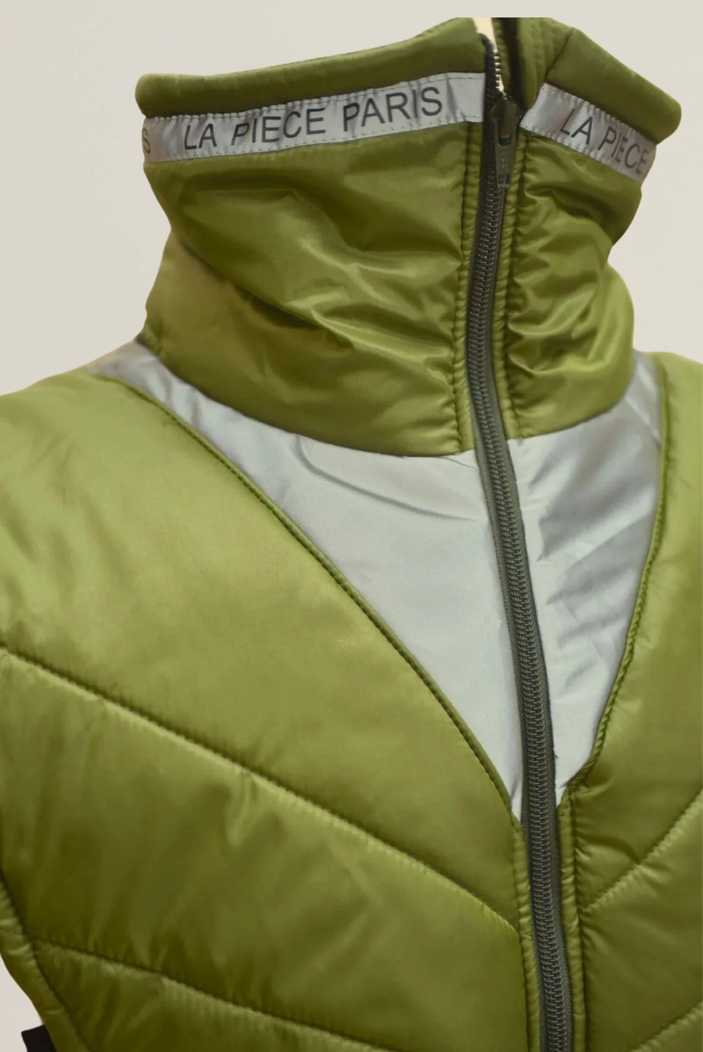 Il peut être porté sous une veste ou un manteau en hiver, ou seul lors des saisons plus douces. Doté d’une incrustation de matière réfléchissante, ce plastron offre le savoir-faire caractéristique de la griffe La Pièce.