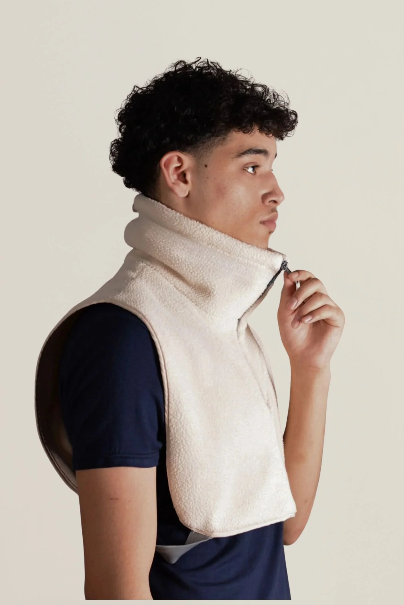 Le plastron CANDEM revisite avec modernité un classique hivernal et de mi saison. Sa texture douce en imitation peau de mouton recyclée, certifiée GRS et OEKO-TEX 100, vous enveloppe de chaleur sans compromettre votre style.