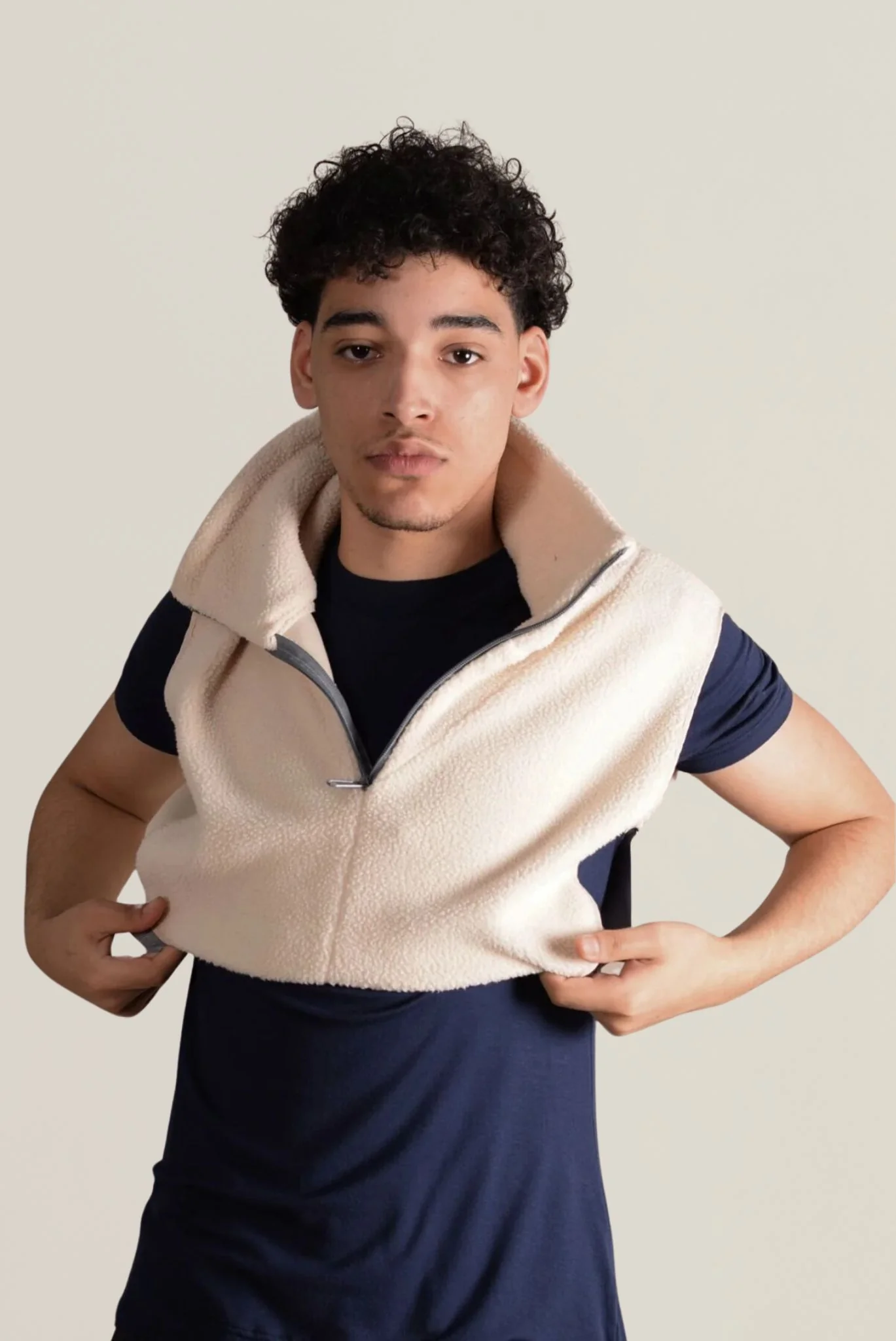 Affrontez l’hiver avec élégance grâce au plastron moutonné CANDEM de La Pièce Paris. Conçu en imitation peau de mouton recyclée fabriquée dans la Loire, il offre chaleur et confort tout en s’adaptant facilement à vos tenues grâce à ses élastiques ajustés et sa fermeture zippée.