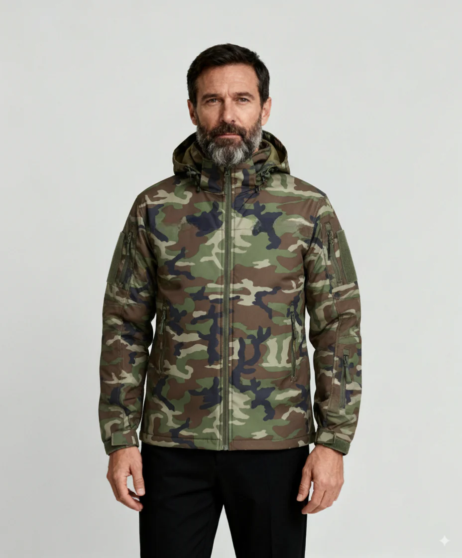 La Aegis Tactical™ combine une construction robuste inspirée du militaire avec une protection climatique complète. Sa membrane déperlante, son tissage coupe-vent et sa doublure polaire haute densité assurent une chaleur stable même par temps froid. Les multiples poches zippées, la capuche réglable et les renforts stratégiques garantissent une fonctionnalité sans compromis.